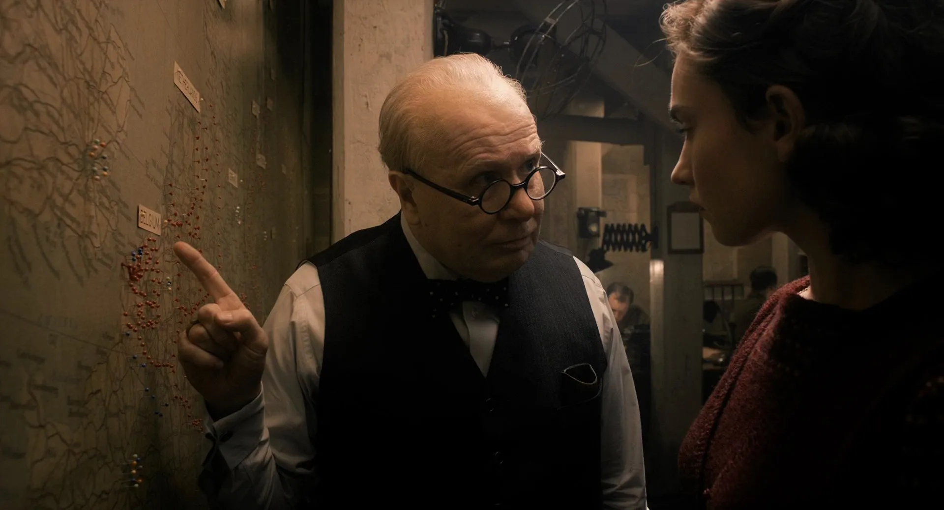 Star Cast: Gary Oldman as Winston Churchill, Kristin Scott Thomas as Clemmie, Ben Mendelsohn as King George VI, Lily James as Elizabeth Layton, Ronald Pickup as Neville Chamberlain, Stephen Dillane as Viscount Halifax, Nicholas Jones as Sir John Simon, Samuel West as Sir Anthony Eden, David Schofield as Clement Atlee, Richard Lumsden as General Ismay, Malcolm Storry as General Ironside, Hilton McRae as Arthur Greenwood, Benjamin Whitrow as Sir Samuel Hoare, Joe Armstrong as John Evans, Adrian Rawlins as Air Chief Marshal Dowding, David Bamber as Admiral Ramsay, Paul Leonard as Admiral Dudley Pound, David Strathairn as President Roosevelt (voice), Eric MacLennan as Tom Leonard, Philip Martin Brown as Sawyers, Demetri Goritsas as Cabinet Secretary Bridges, Jordan Waller as Randolph Churchill, Alex Clatworthy as Diana Churchill, Mary Antony as Mary Churchill, Bethany Muir as Sarah Churchill, Anna Burnett as Pamela Churchill, Jeremy Child as Lord Stanhope, Brian Pettifer as Lord Kingsley Wood, Michael Gould as Lord Londonderry, Paul Ridley as House of Commons Speaker, Robin Pearce as Ernle Hastings, Michael Bott as Equerry, Olivier Broche as Reynaud, Mario Hacquard as Daladier, Pip Torrens as BBC Producer, Edmund Wiseman as Actor, Hannah Steele as Abigail Walker, Nia Gwynne as Alice Simpson, Ade Dee Haastrup as Marcus Peters, James Eeles as Maurice Baker, Flora Nicholson as Jessie Sutton, Bronte Carmichael as Young Girl on Tube, Roisin O'Neill as Agnes Dillon, John Locke as Oliver Wilson, Joanna Neary as Margaret Jerome, Richard Glover as Brigadier Nicholson, Tom Ashley as Ramsay Staffer, Joshua Higgott as Reporter, Imogen King as Teenage Girl at Tube Map, Miles Gallant as Naval Map-Room Officer, Faye Marsay as Sybil, John Atterbury as Sir Alexander Cadogan, James Harkness as AD Nicholl (Secretary #1), Joshua James as W D Wilkinson (Secretary #2), Charley Palmer Rothwell as Christopher Wilson (Photographer), Patsy Ferran as Maid, Sarah Flind as Cook, Steffan Donnelly as Back Bencher, Kieran Buckeridge as Cecil Beaton, Johnny Otto as Member of Parliament (uncredited)